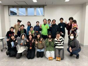 フロイデDANのひたちおおみや楽市のハロウィーンイベントです。フロイデDANは医療介護福祉の視点からのまちづくりとして、地域住民の健康増進、医療、介護の啓発に関すること、地域住民のコミュニティ形成に向けた活動、社会参加の機会創出を目的とした団体です。その活動の一環として、商店街のハロウィーンイベントと同時に開催され、昨年に引き続きつくば総診のメンバーも参加させていただきました。